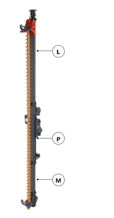 Az MPL-400 vezetőoszlop egy alapmodulból (P) és bővítő modulokból (M és L) áll. Az L-szakasz eltávolításával az oszlop lerövidíthető, így 6 méteres hosszúság/mélység érhető el.