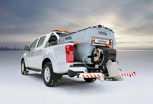 A Hilltip IceStriker™ 12V-os elektromos só- és homokszórókat úgy tervezték, hogy megfeleljenek az európai pickup és könnyű teherautók szegmensének követelményeinek. Akár egy kisméretű sószóróra van szüksége egy pickuphoz, akár egy nagy kapacitású homokszóróra, nálunk megtalálhatja a megfelelő megoldást. A HD polietilénből készült könnyű tartálytest és a rozsdamentes acélból készült alkatrészek hosszú távú védelmet nyújtanak a korrózió és a rozsda ellen. Az egyedülálló HTrack™ vezérlő- és nyomkövető rendszerünkkel az IceStriker™ a legjobb sószóró pickupokhoz. Segít pénzt megtakarítani és csökkenti a környezetterhelést, miközben hatékony eredményeket ér el. A tartály és a burkolatok nagy kopásállóságú műanyagból készülnek, a hátsó farokrész leszerelhető. A kihordó csiga fordulatszáma változtatható így állítható a kiszórt mennyiség. A tartály alján található egy elektromosan működő vibrátor amivel elkerülhető a só beboltozódása. Opcióban rendelhető folyadék kijuttató rendszer is. A tartály duplafalú kialakítású és ez szolgál a folyadék tárolására. A kijutattáshoz felszerelhető szórókeret és kézi adapter is.