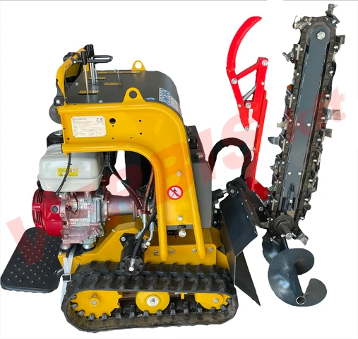 Gumihevederes láncos árokásó öntözőrendszerek telepítéséhez, kábelek, vezetékek és kisebb átmérőjú közművek fektetéséhez, 80 cm mélységben. Az árókásó csak a legkisebb szükséges földmennyiséget távolítja el, ezáltal hatákony és gyors munkavégzést biztosít, a lehető legkisebb kárt okozza a talajban és a csökkenti helyreállítási időt.