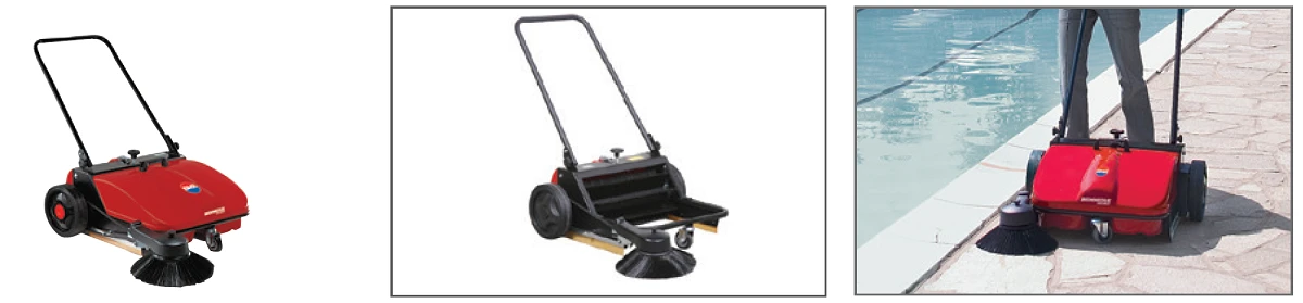 - a hajtómű a kezelő által kifejtett tolónyomás energiáját átalakítva hajtja meg a két kefét, amelyek hatékonyan gyűjtik össze a port, a kisebb törmelékeket és szeenyeződéseket
