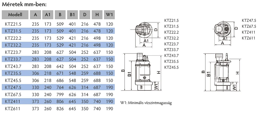 A Tsurumi KTZ víztelenítő zagyszivattyú jellemzői: